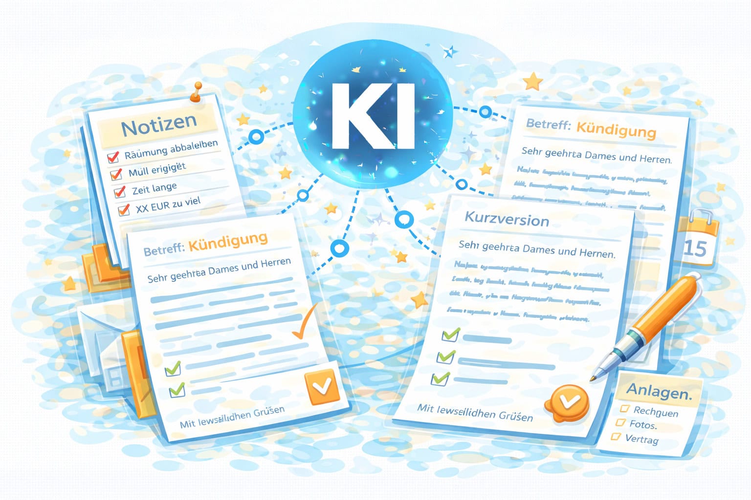 Man weiß oft, was man sagen will, aber nicht wie. KI kann aus Stichpunkten ein klares Schreiben machen. Höflich, bestimmt und ohne Drama.